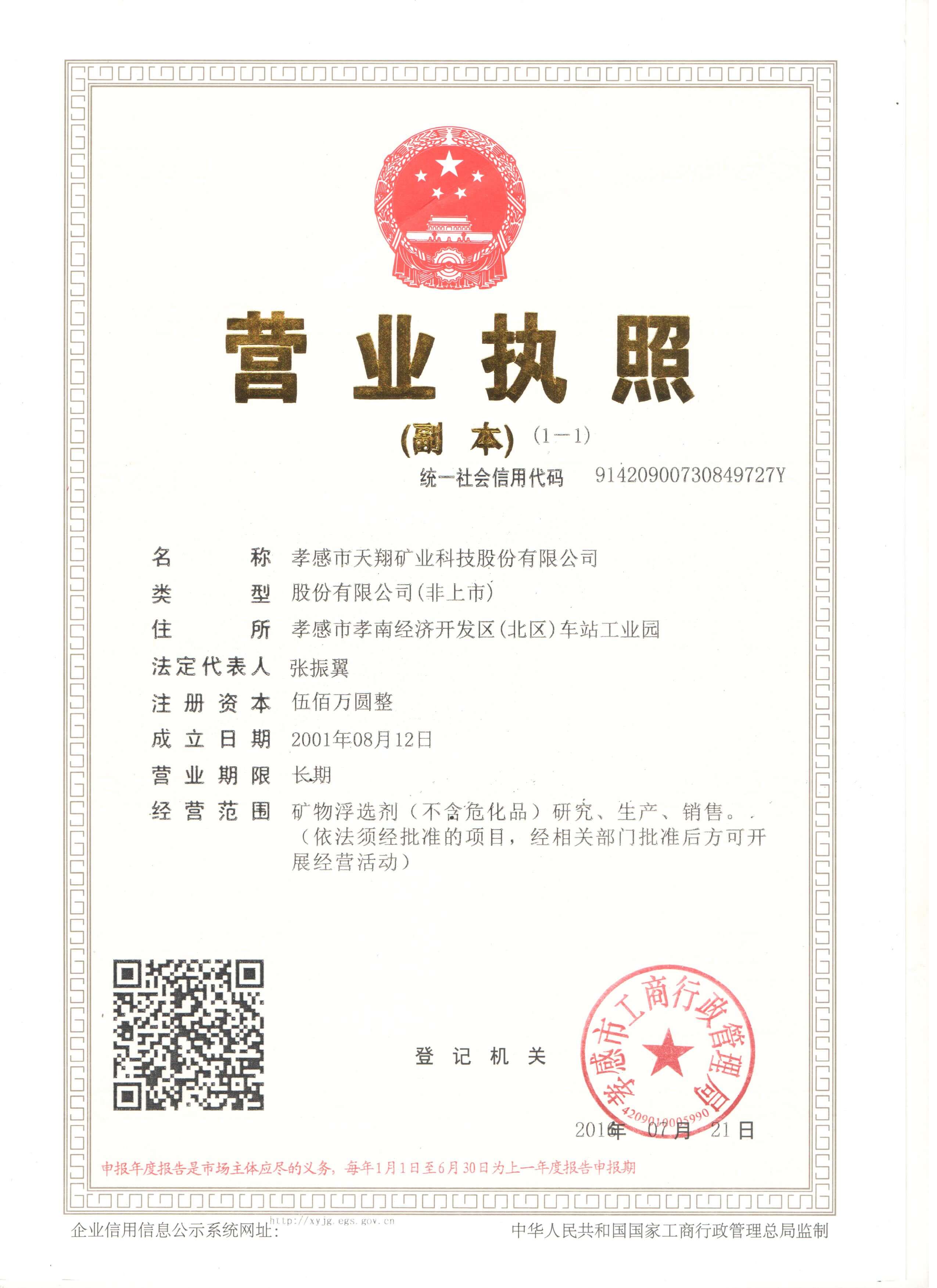 孝感市天翔礦業科技股份有限公司是一家專業從事氧化礦浮選藥劑研究開發(fā)和生產的企業。成立于1996年,經過20多年的研發(fā)與生產實踐,產品覆蓋磷礦、鋰礦、螢石礦、鎢礦、錫礦、鈦鐵礦、鋁土礦、稀土礦等多礦種的浮選藥劑,在業內享有一定知名度。一份耕耘,一份收獲,多年的積累一定會產生行業認可的高端產品。公司將會提供給礦山高效、有競爭力的產品,會與礦山企業一道,共同為行業發(fā)展作出優(yōu)秀的貢獻。